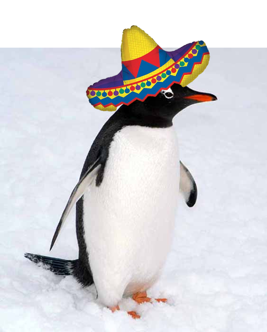 As for the penguin… He says in his best New Zealand accent: “Excuse me, can anyone tell me where the frozen margaritas are kept?”