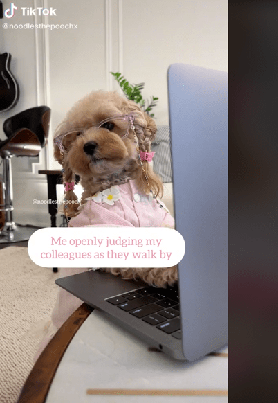Here’s TikTok star Noodles the Pooch thinking mean thoughts about her coworkers while looking adorable. Enjoy.